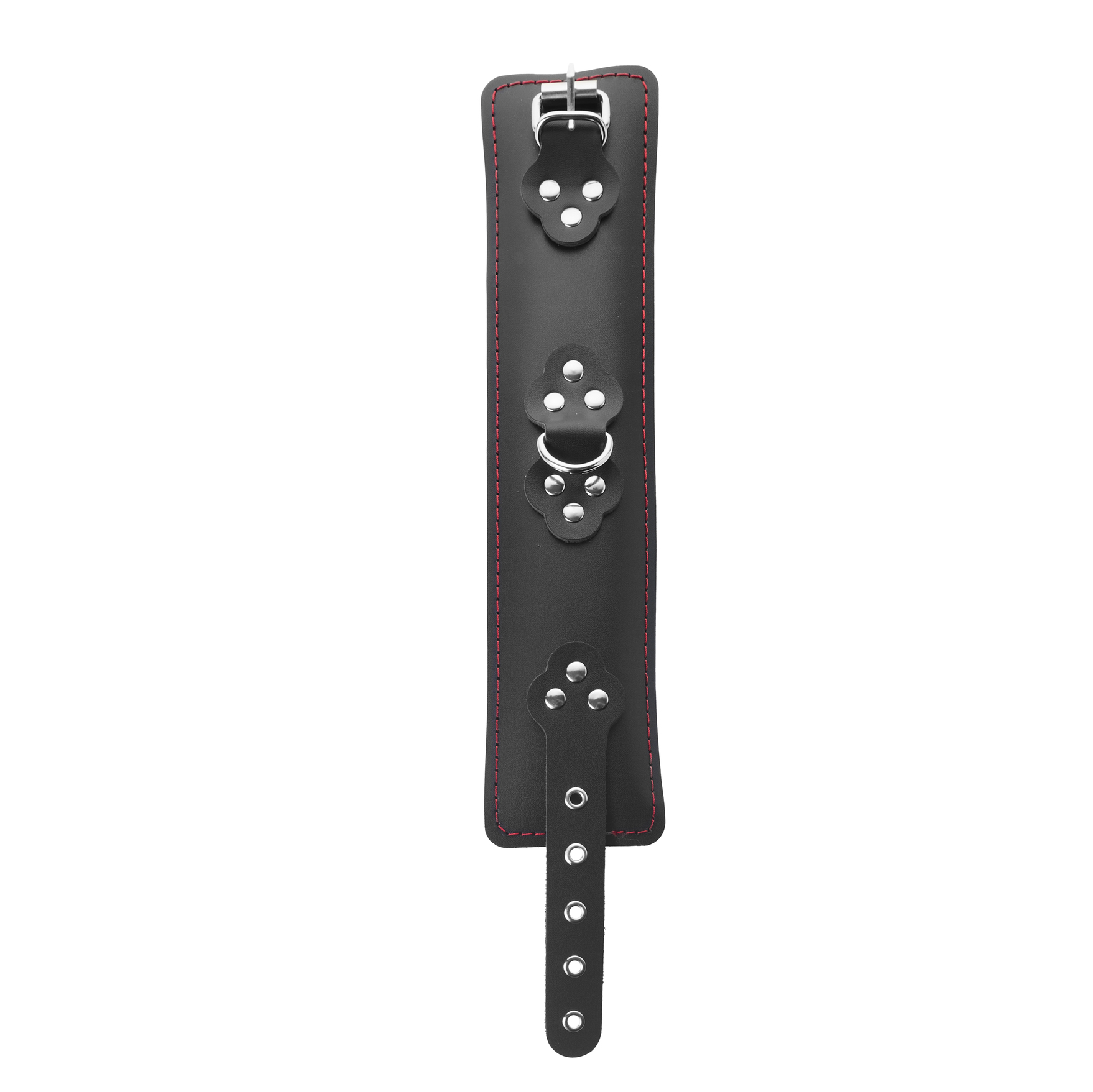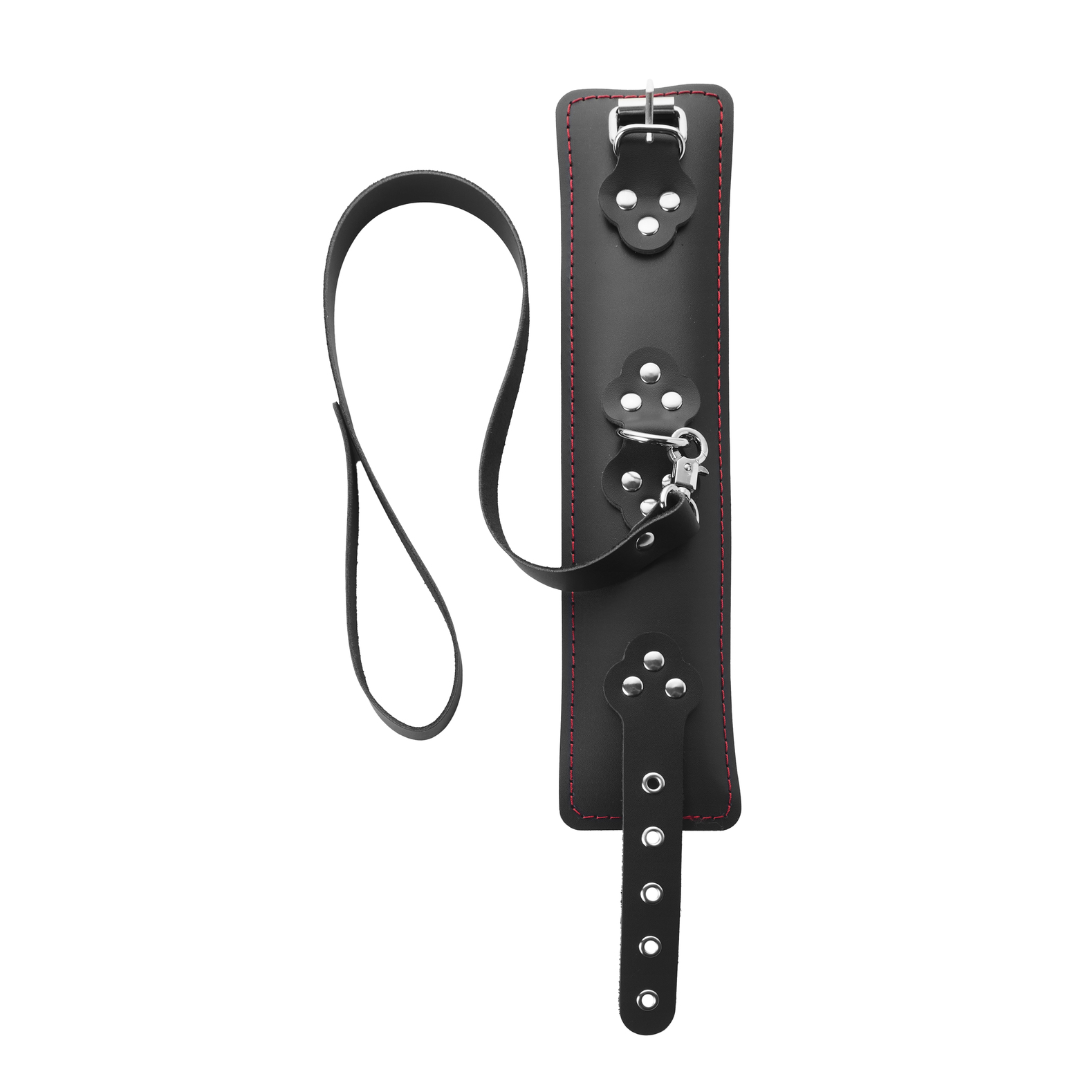 Ручная работа из двухслойной кожи с мягкой подкладкой и наполнителем, гарантирует комфорт и безопасность. Брутальный дизайн, универсальный размер (Unisex) и огромный запас прочности. Декоративный шов и прочный поводок из цельного куска кожи завершают образ.