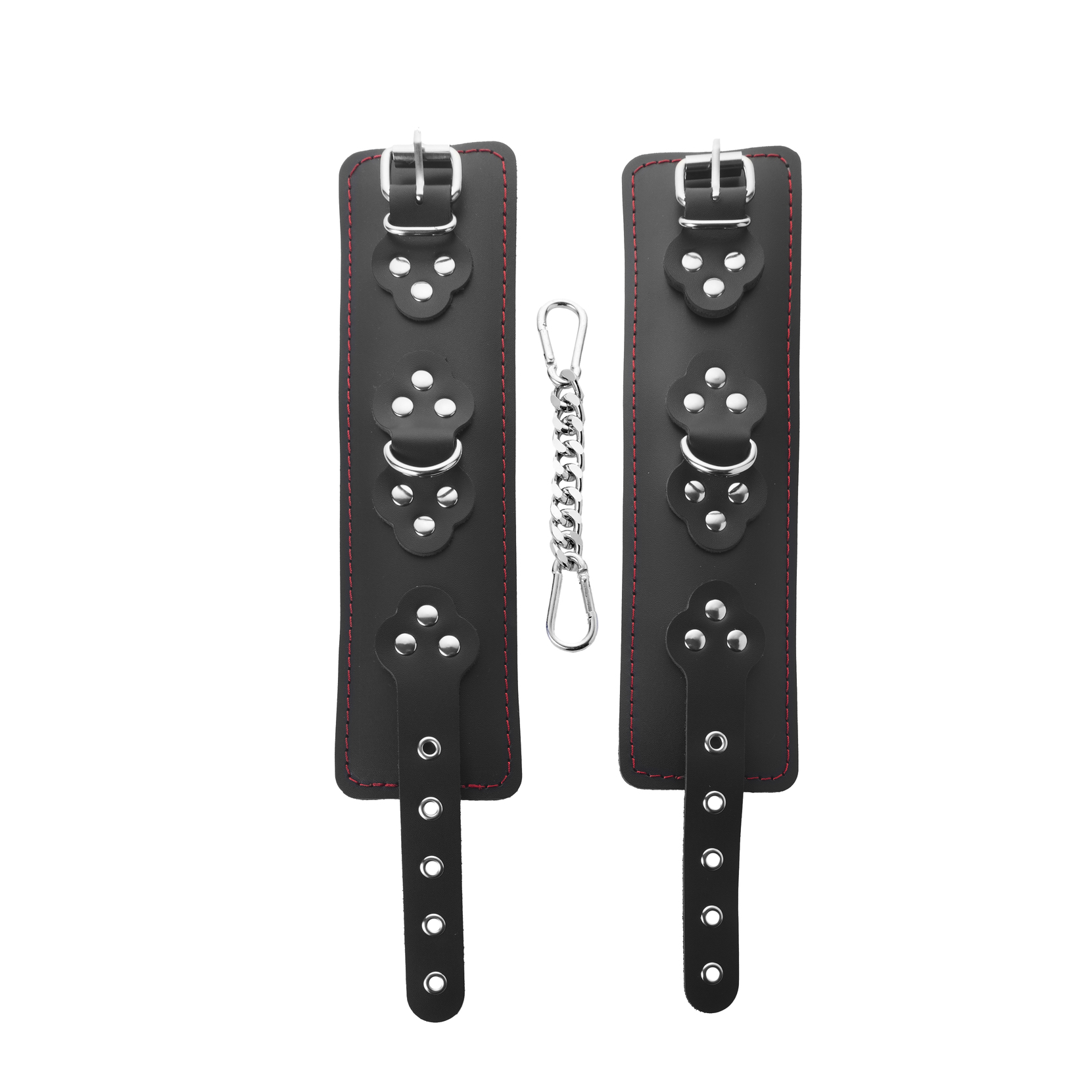 Прочные оковы из двухслойной натуральной кожи с мягкой внутренней подкладкой и наполнителем. Фурнитура из нержавеющей стали гарантирует долговечность. Универсальный размер, высокая функциональность.