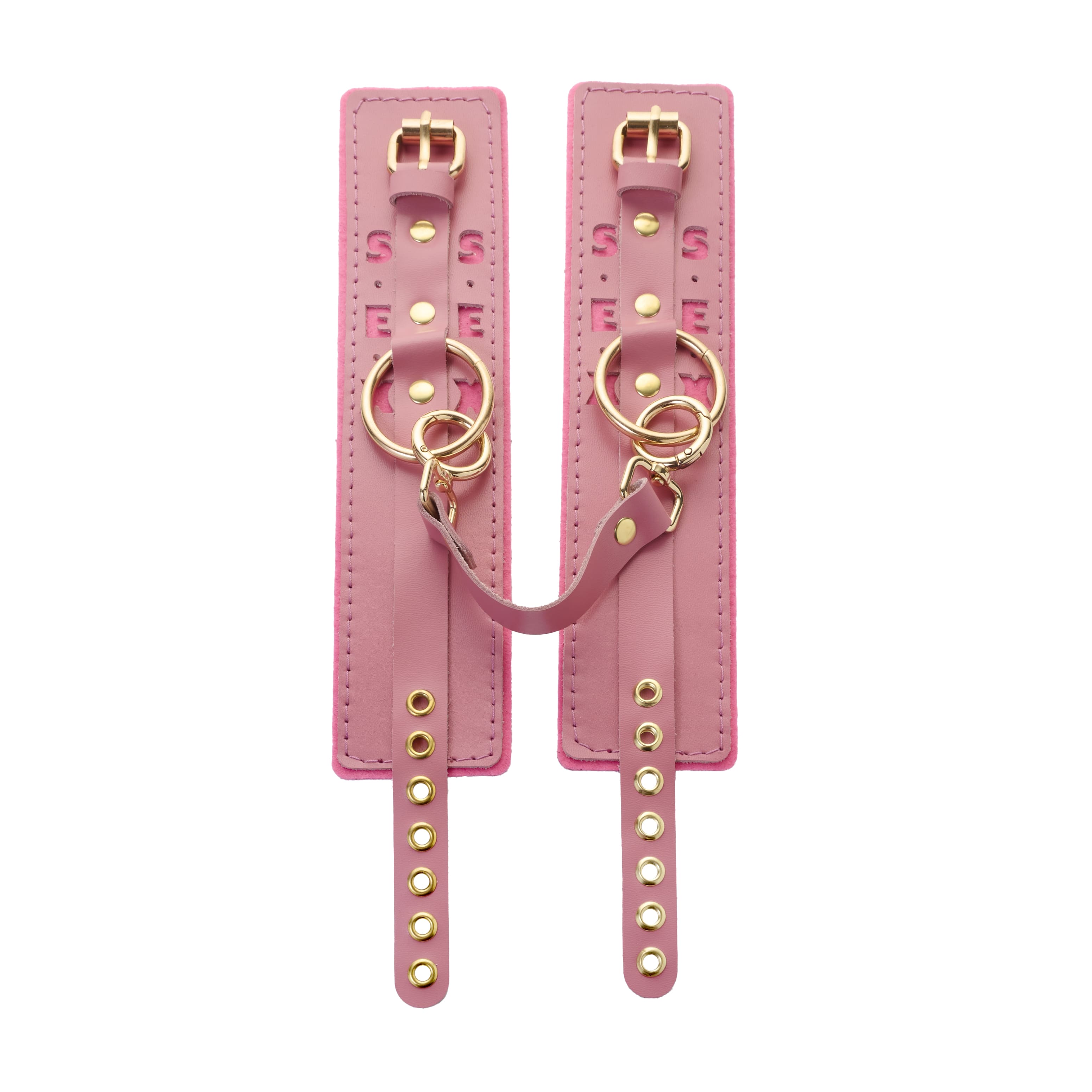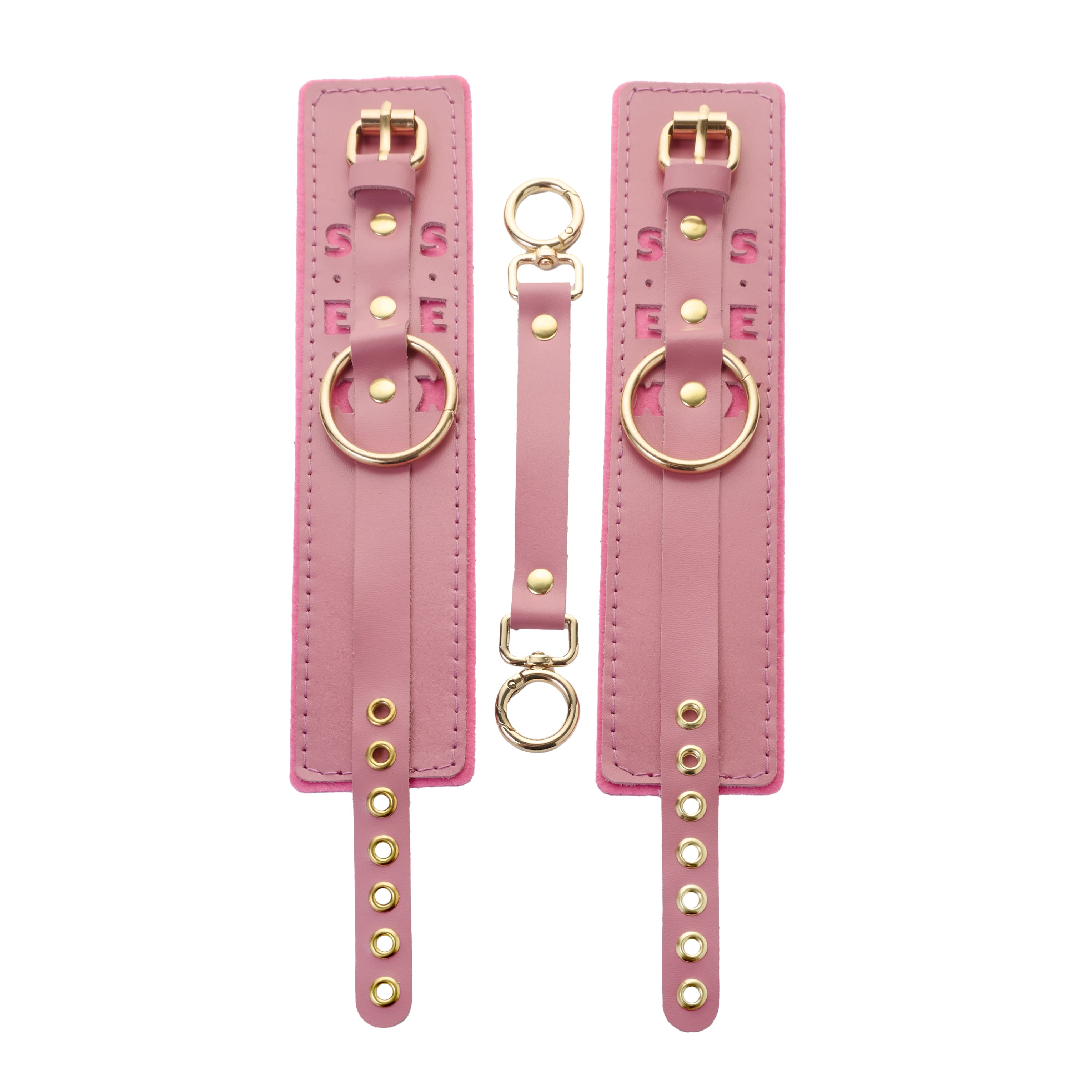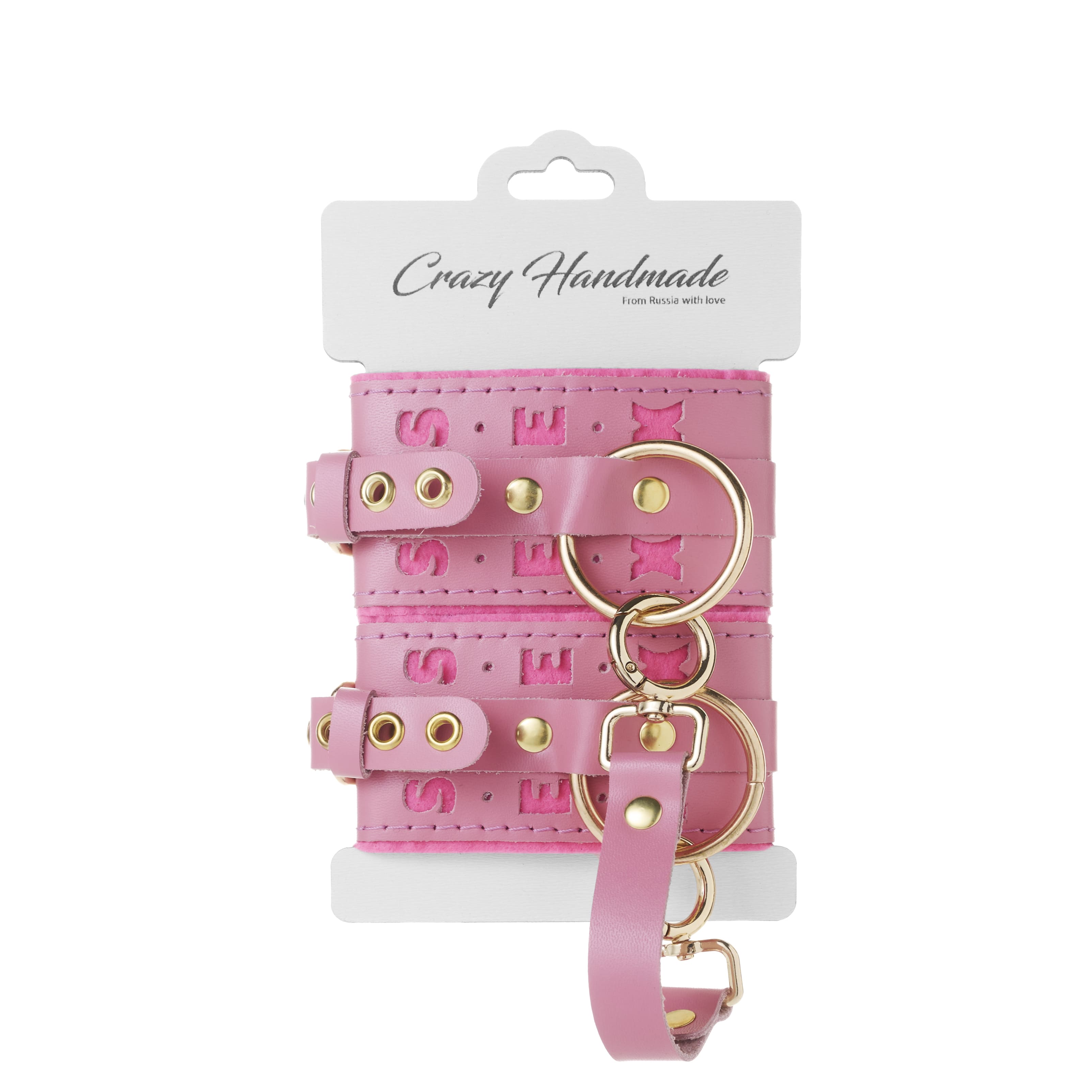 Оковы розовые с надписью SEX (фетр, золото)